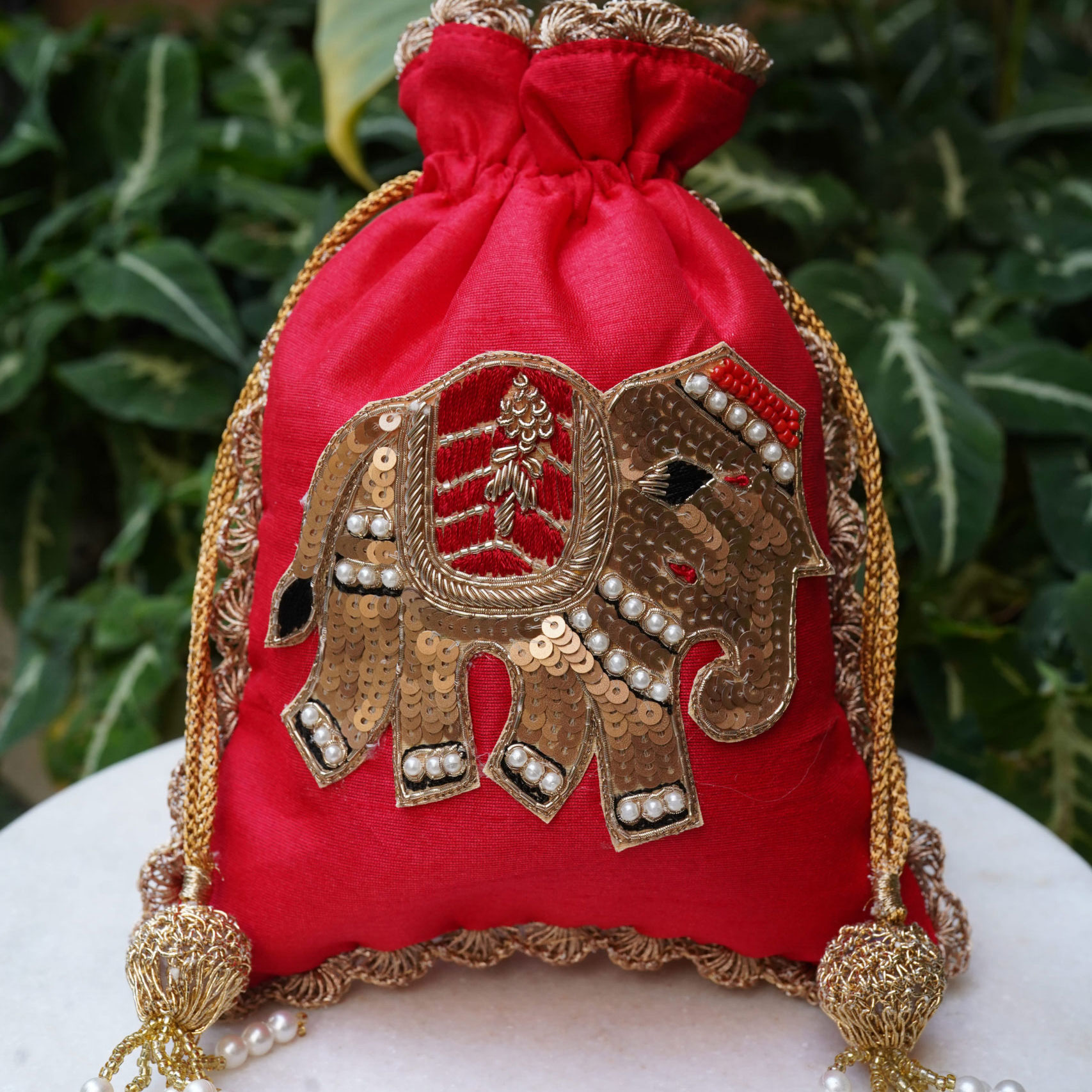 Pastel and Bright Embroidered Pearl Potli Set (4 Colors)